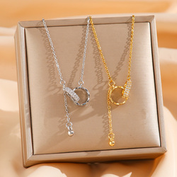 Collar De Acero Inoxidable Gold Plated Double Ring Gorgeous Full Zircon Diamond Necklace Stainless Steel Clavicle Chain Necklace