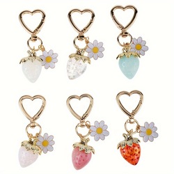 Cute 3d Strawberry Keychain Kawaii Design Heart Flower Daisy Fruit Strawberry Key Ring Bag Purse Charm Jewelry Decor Accessories