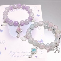 Wholesale Women Stone Bead Glass Beads Bracelet Colorful Crystal Beaded Butterfly Girls Bracelet Ladies Bracelet